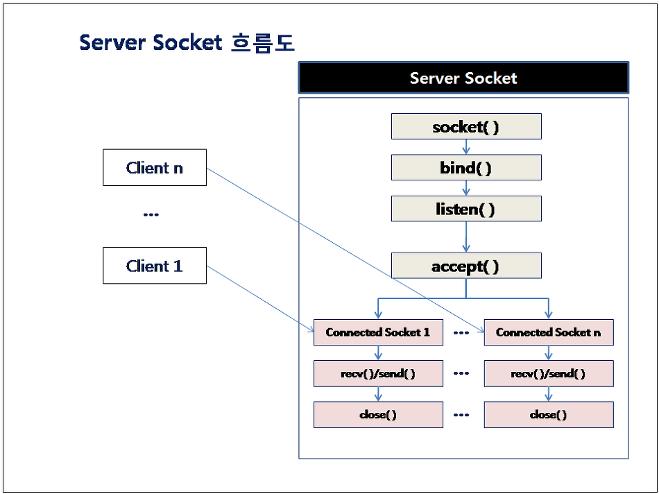 accept(2)를 통해서 생성된 socket descriptor로 각 각의 client와 실질적인 통신을 할 수 있습니다.