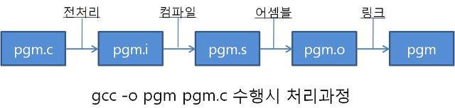 C언어 작성된 프로그램(*.c)을 컴파일 할때에 전처리기는 전처리 구문을 해석하여 주석부를 없애고 전처리 구문을 처리한 *.i 파일을 임시로 생성합니다. 컴파일러는 *.i를 컴파일하여 assembler 소스 코드를 생성합니다. assembler는 assembler 소스를 처리하여 기계어 코드를 생성합니다. 기계어 코드를 다른 기계어 코드와 link하여 실행파일을 생성합니다.